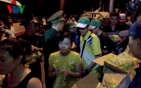 | Những du khách đầu tiên trở về đất liền từ đảo Cô Tô được nhận hỗ trợ của tỉnh Quảng Ninh |