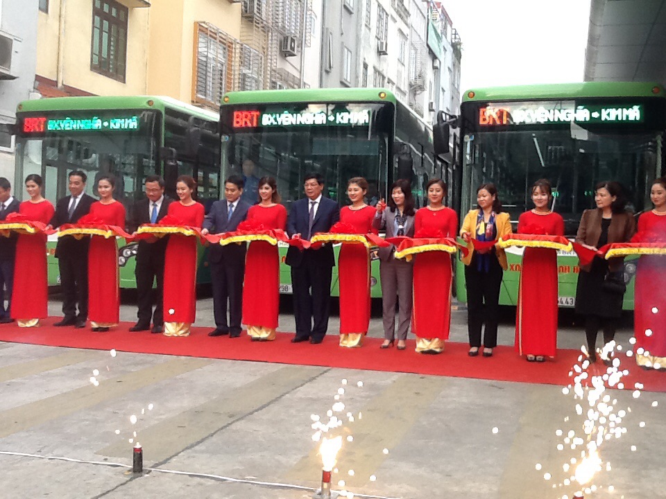 Thành phố Hà Nội sáng 31/12 chính thức khai trương tuyến xe buýt nhanh đầu tiên Kim Mã - Yên Nghĩa. Chủ tịch Ủy ban nhân dân thành phố Hà Nội Nguyễn Đức Chung, Phó Chủ tịch Uỷ ban An toàn giao thông quốc gia Khuất Việt Hùng tới dự và cắt băng khai trương.
