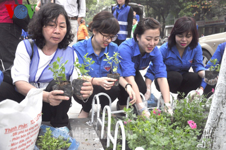 (VOV5) - Thành đoàn Hà Nội ngày 5/4 tổ chức triển khai tuyến đường hoa thanh niên trên phố Bà Triệu (quận Hoàn Kiếm, Hà Nội). Đây là chương trình đầu tiên Hà Nội thực hiện mô hình đường hoa thanh niên trên các tuyến phố nội thành Thủ đô, nhằm tạo vẻ đẹp cảnh quan cho thành phố Hà Nội.