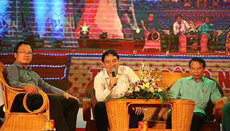 | Bí thư thứ nhất Trung ương Đoàn Nguyễn Đắc Vinh cùng các khách mời trao đổi với thanh niên công nhân tại chương trình - Ảnh: Báo Tiền Phong |