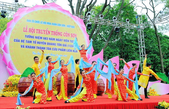 | Chương trình văn nghệ khai hội mùa xuân Côn Sơn – Kiếp Bạc 2017. Ảnh: baotainguyenmoitruong |