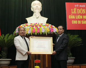 Liên hiệp các hội Unesco Việt Nam trao bằng bảo trợ cho Di sản văn hóa Mo Mường Hòa Bình.