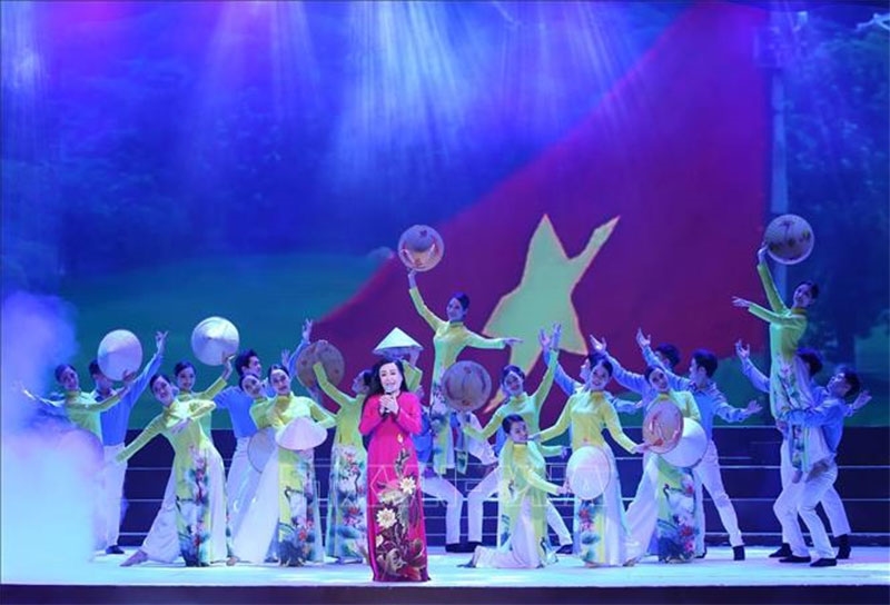Chương trình nghệ thuật “Niềm tin và khát vọng” tối 21-11 tại Nhà hát Lớn (Hà Nội) chào mừng Hội nghị Văn hóa toàn quốc. Ảnh: TTXVN |