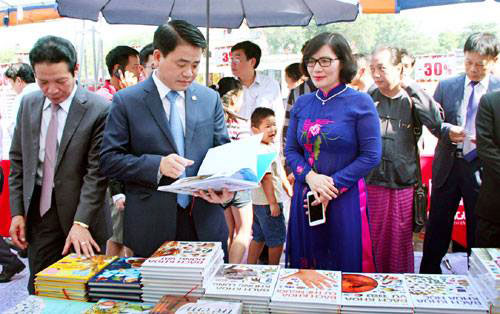 | Chủ tịch UBND TP Hà Nội Nguyễn Đức Chung đi thăm các gian hàng tại “Hội Sách Hà Nội 2016” |