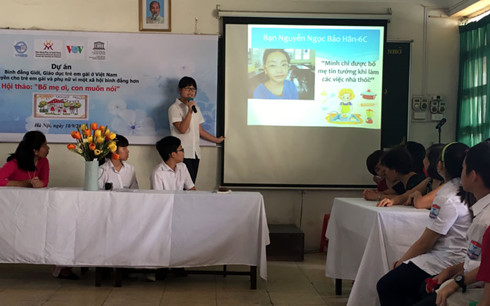 Sáng 18/9, Văn phòng Tổ chức Giáo dục, Khoa học và Văn hóa Liên hợp quốc (UNESCO), phối hợp với Đài Tiếng nói Việt Nam, Viện Khoa học Giáo dục, Bảo tàng Phụ nữ Việt Nam và Trường Trung học Cơ sở Thực nghiệm tổ chức chương trình truyền thông về bình đẳng giới và Hội thảo “Bố, mẹ ơi con muốn nói”.
