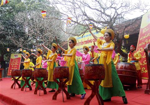 Biểu diễn nghệ thuật trong ngày khai hội. Ảnh: Thanh Tùng - TTXVN