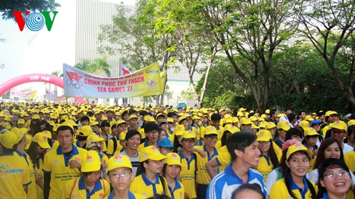 Sau lễ xuất quân, hơn 5.000 người là thành viên các đội tuyển thể thao Việt Nam; học sinh, sinh viên các trường tại Thành phố Hồ Chí Minh và người dân đi bộ diễu hành ủng hộ tinh thần cho đoàn thể thao Việt Nam dự SEA Games 27.