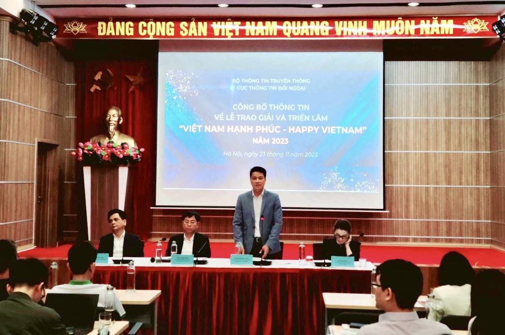 Lễ trao giải và Triển lãm ảnh, video “Việt Nam hạnh phúc - Happy Vietnam năm 2023” sẽ diễn ra tối 19/12, tại Nhà hát Lớn, Hà Nội. Ban Tổ chức sẽ trao 02 giải Nhất, 02 giải Nhì, 02 giải Ba, khoảng 20 giải Khuyến khích và các giải thưởng khác. Đây là thông tin được đại diện Cục Thông tin đối ngoại (Bộ Thông tin và Truyền thông) công bố tại buổi họp báo thông tin về sự kiện, diễn ra sáng nay (23/11), tại Hà Nội.