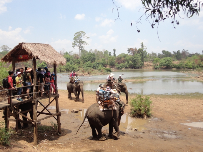 | Du lịch cỡi voi trên dòng SêrêPốk thu hút khách trong dịp Tết. Ảnh: Ngọc Hùng/Báo Giao thông |