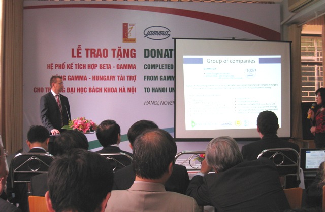 Việc hỗ trợ, cung cấp các thiết bị trong lĩnh vực năng lượng hạt nhân của Hungary cho Việt Nam đã được tiến hành trong nhiều năm trước. Trong chuyến sang thăm và trao quà tặng là Hệ phổ kế tích hợp BETA-GAMMA, trị giá 1,5 tỷ đồng, cho Trường Đại học Bách Khoa Hà Nội mới đây, ông Zít-nho-nhi Ót-ti-lo, (Zsitnyanyi Attila), Tổng giám đốc tập đoàn Gamma, Hungary cho biết, trường Đại học Bách khoa Hà Nội đã sử dụng những thiết bị của Hungary để đáp ứng quá trình học cho sinh viên từ hai chục năm về trước. Hệ phổ kế tích hợp BETA-GAMMA, món quà của tập đoàn lần này, là một trong những hệ phổ kế tích hợp hiện đại nhất trên thế giới, phù hợp với lĩnh vực đào tạo vì cách thức sử dụng dễ dàng, an toàn và có thể dùng trong việc hướng dẫn cho các sinh viên từ mức cơ bản nhất đồng thời có thể phục vụ cho các bài tập, bài nghiên cứu ở trình độ cao: “Tôi rất vui được có mặt ở trường Đại học Bách Khoa Hà Nội, ngôi trường cách đây rất nhiều năm đã có khoa vật lý hạt nhân, đã sử dụng những thiết bị của Hungary từ những năm trước. Hệ phổ kế tích hợp BETA-GAMMA là một thiết bị đo để kiểm tra và phát hiện ra chất phóng xạ. Có thể được kiểm tra trong ngành y hoặc ngành lương thực thực phẩm. Đây là thiết bị đo cơ bản, được sử dụng nhiều ở châu Âu và trên thế giới”.