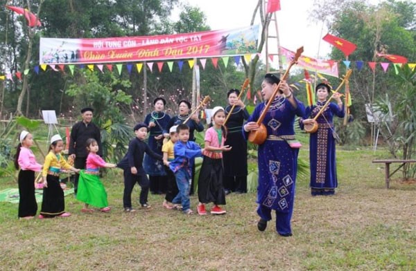 Hoạt động chuyên đề “Xuân trên bản làng em” là điểm nhấn trong tháng 1, với Chương trình “Ngày xuân vang mãi câu then” và giới thiệu trò chơi dân gian của dân tộc Tày. Bên cạnh đó là hoạt động chuẩn bị, trang trí không gian đón Tết của các dân tộc tại Làng.