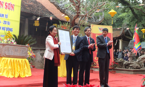 | Phó Chủ tịch nước Nguyễn Thị Doan trao bằng công nhận Thanh Hư Động là bảo vật Quốc gia (Ảnh: Hồng Bắc) |