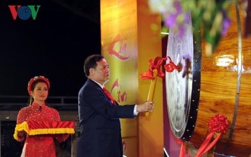 Ông Nguyễn Mạnh Hiển, Bí thư tỉnh ủy Hải Dương đánh trống khai hội mùa Xuân Côn Sơn - Kiếp Bạc 2019. |