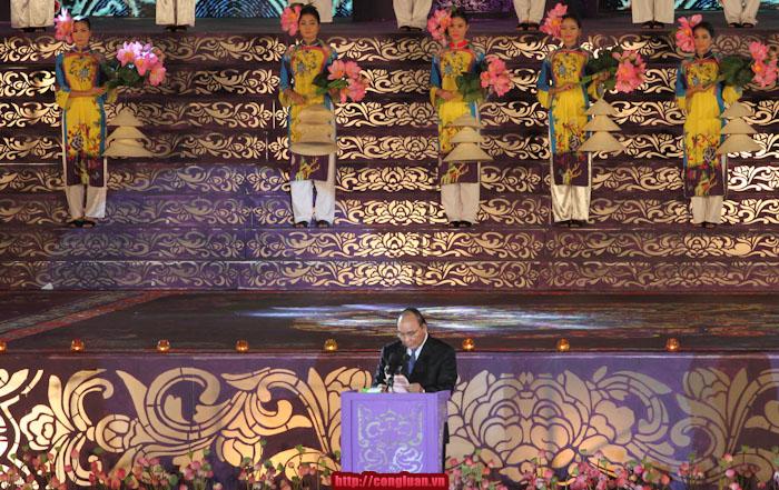 Phát biểu tại lễ khai mạc, Phó Thủ tướng Nguyễn Xuân Phúc khẳng định Đảng và Nhà nước xác định văn hóa là nền tảng tinh thần của xã hội, phát triển kinh tế phải dựa trên nền tảng văn hóa, hướng đến một xã hội công bằng, dân chủ, văn minh, con người được hạnh phúc và phát triển toàn diện. Chính vì vậy, xây dựng và phát triển văn hóa vừa là mục tiêu, vừa là động lực trong sự nghiệp phát triển kinh tế - xã hội của đất nước. Kho tàng di sản văn hóa của vùng đất Cố đô Huế tồn tại hôm nay mang trong mình những giá trị đặc sắc, độc đáo, là nguồn cảm hứng để thu hút du khách trong và ngoài nước.