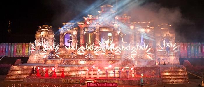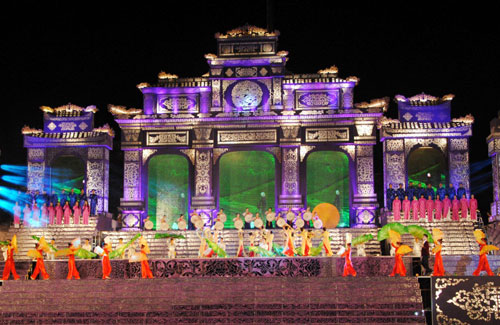 (VOV5) - Đêm khai mạc diễn ra tối 12/4, tại Quảng trường Ngọ Môn, thành phố Huế, tỉnh Thừa Thiên Huế, quy tụ gần 40 đoàn nghệ thuật của 37 quốc gia với dàn diễn viên lên đến 700 nghệ sĩ của Việt Nam và quốc tế, trong không gian màu sắc rực rỡ, sân khấu khán đài được thiết kế độc đáo, mới lạ đã thu hút hơn 2 vạn du khách đến tham dự.