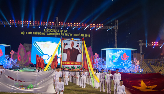 Tối 1/8, tại Sân vận động thành phố Vinh (Nghệ An), Phó Thủ tướng Vũ Đức Đam, lãnh đạo Bộ Giáo dục và Đào tạo, lãnh đạo tỉnh Nghệ An và đông đảo các vận động viên đã dự lễ khai mạc Hội khỏe Phù Đổng toàn quốc lần thứ IX năm 2016.