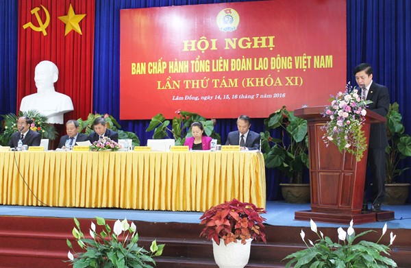 | Ông Bùi Văn Cường, Chủ tịch Tổng Liên đoàn lao động Việt Nam phát biểu khai mạc hội nghị lần thứ 8 Ban chấp hành Tổng LĐLĐVN (khóa XI). Ảnh: laodong.com.vn |