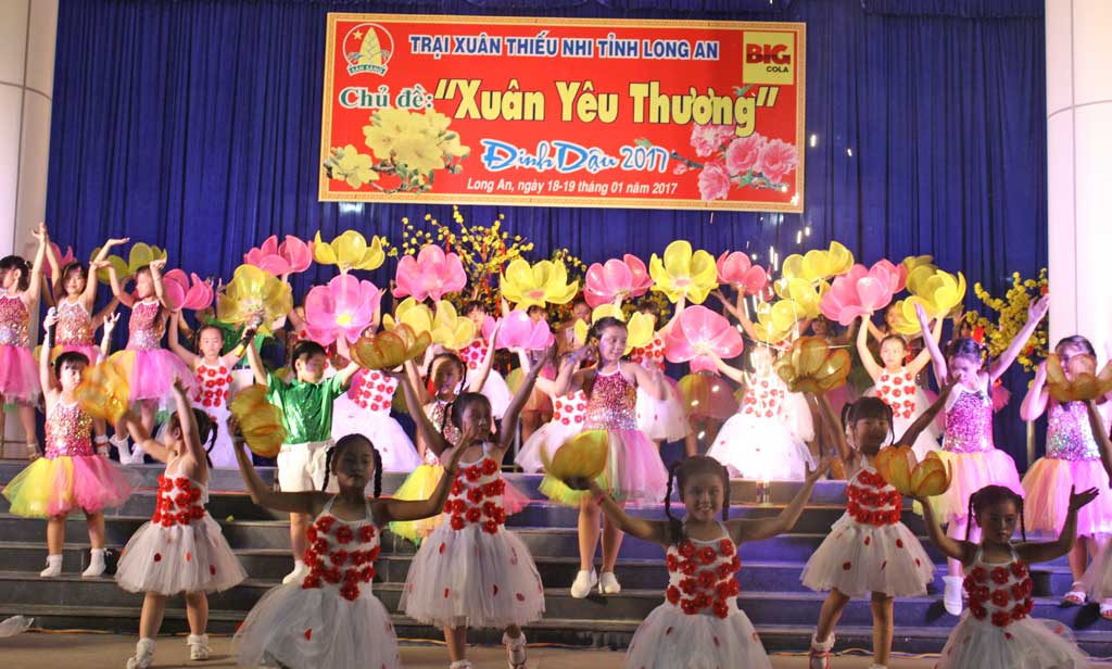 Hội trại Xuân thiếu nhi năm 2017 với chủ đề “Xuân yêu thương” do Tỉnh đoàn Long An tổ chức đã khai mạc tối 18/1, tại Nhà thiếu nhi tỉnh. 400 em thiếu nhi đến từ 15 huyện, thị xã, thành phố trong tỉnh tham dự hội trại. Sự kiện này là sân chơi bổ ích, giúp các em thiếu nhi trong tỉnh có dịp giao lưu, nêu cao tinh thần đoàn kết đồng thời nâng cao kỹ năng sinh hoạt tập thể, kỹ năng sống và phát huy năng khiếu cho đội viên, thiếu niên, nhi đồng.