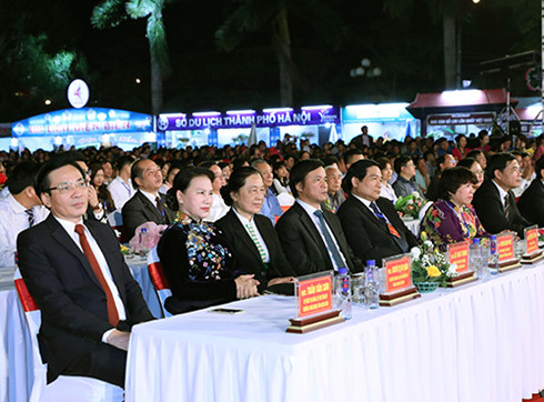 | Chủ tịch Quốc hội Nguyễn Thị Kim Ngân và các đại biểu Bộ, ngành Trung ương, địa phương dự lễ khai mạc (Ảnh: Trọng Đức) |