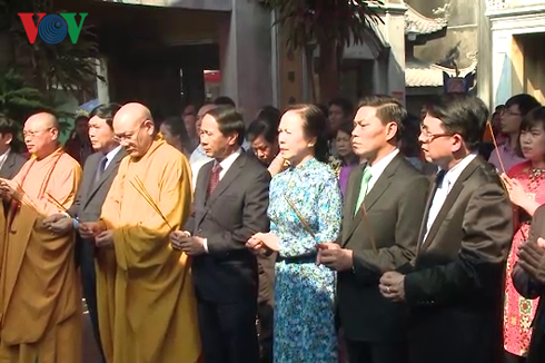 | Lãnh đạo thành phố Hải phòng dâng hương tại Đình An Biên, mở đầu cho các hoạt động của lễ hội Lê Chân 2018. |