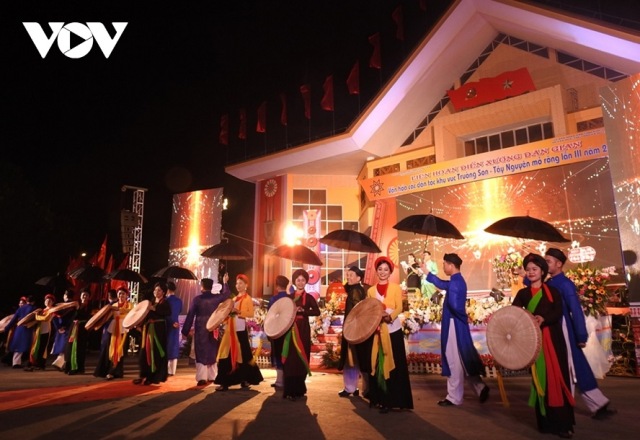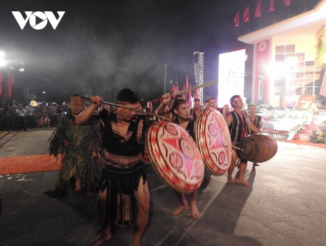 Lễ khai mạc Liên hoan Diễn xướng dân gian văn hóa các dân tộc khu vực Trường Sơn - Tây Nguyên mở rộng lần thứ III. Ảnh: VOV |