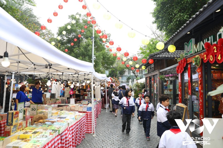 Phố Sách Xuân Giáp Thìn 2024 bổ sung thêm nhiều gian hàng sách và khu vui chơi với các hoạt động giải trí bổ ích, thú vị nhằm khuyến khích khả năng tư duy, sáng tạo, phát triển tinh thần tập thể đối với trẻ em. Ảnh: VOV |