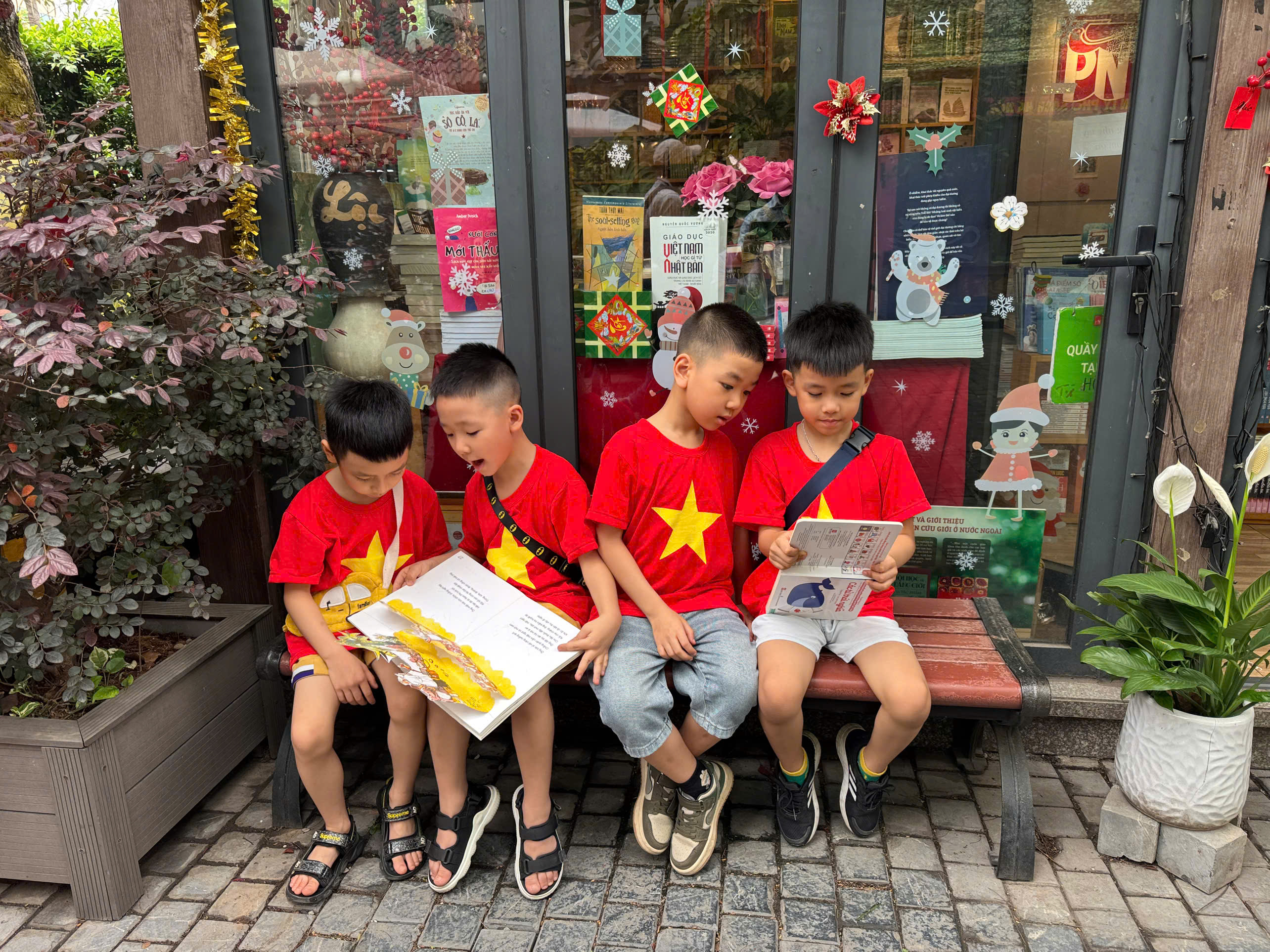 Các em học sinh đang đọc sách tại Phố Sách Hà Nội. Ảnh: Lê Huy/VOV5 |