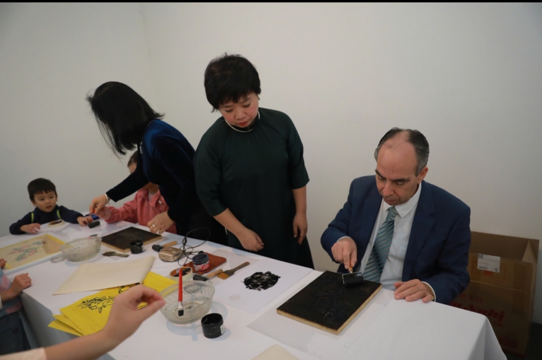 Trải nghiệm in tranh Hàng Trống. Ảnh Ngọc Anh |