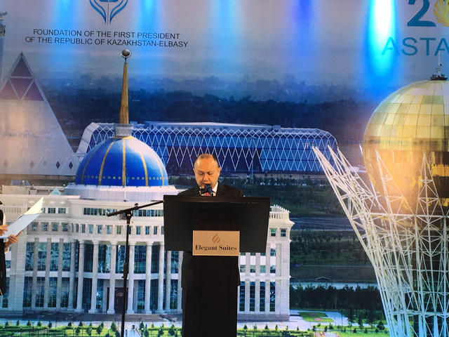 Đại sứ đặc mệnh toàn quyền Cộng hòa Kazakhstan tại Việt Nam Beketzhan Zhumakhanov phát biểu khai mạc triển lãm - Ảnh: Đức Hoàng |