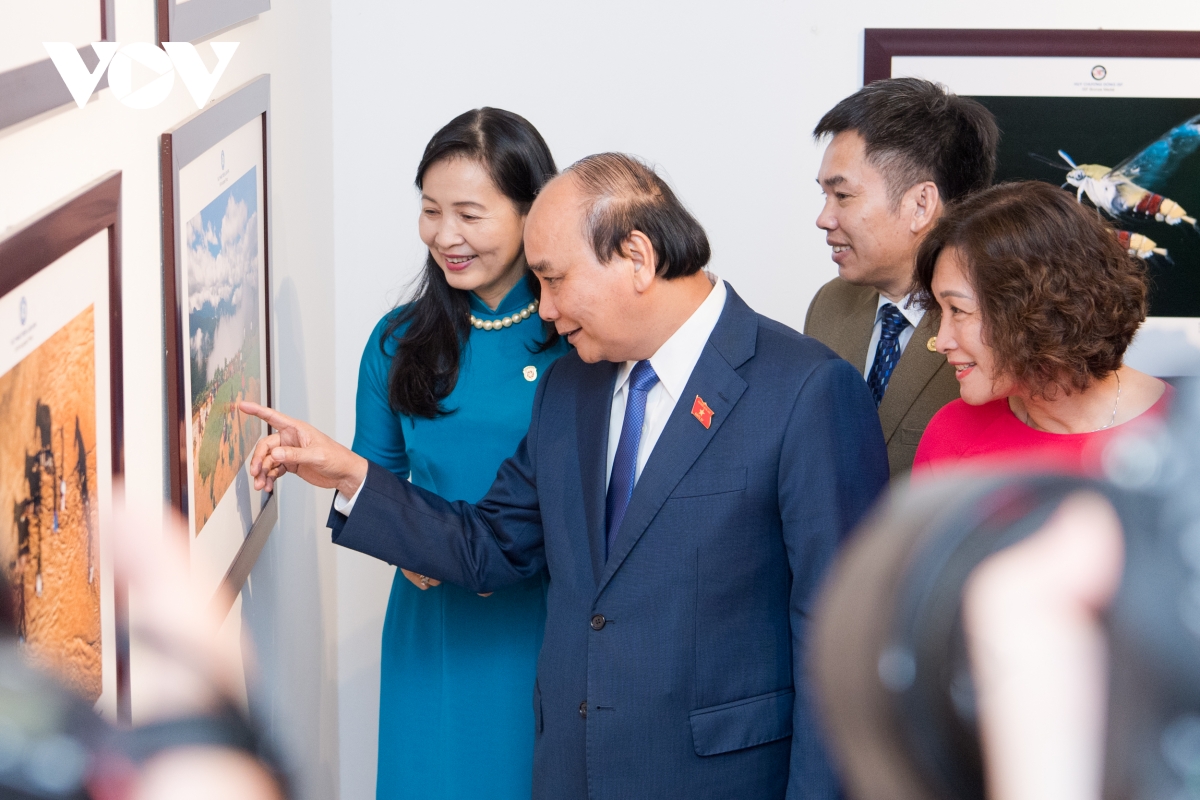 Chủ tịch nước Nguyễn Xuân Phúc tham quan triển lãm ảnh. Ảnh: VOV |
