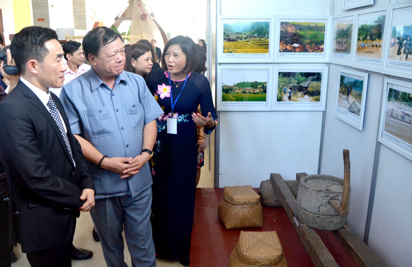 | Đại biểu tham quan khu vực trưng bày tranh, ảnh, hiện vật của Bảo tàng Văn hóa các dân tộc Việt Nam. Ảnh: Huy Hoàng |