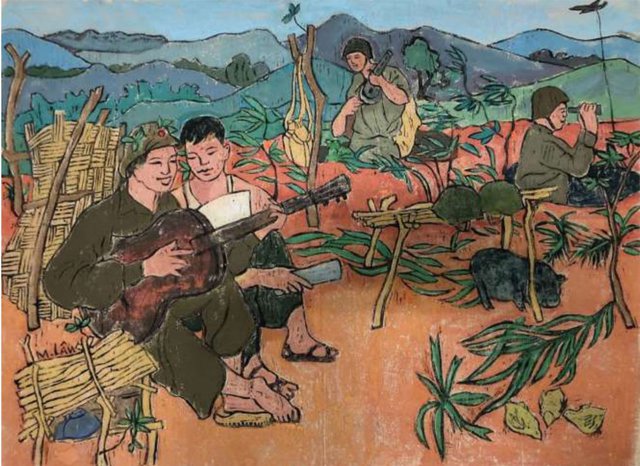 Đặc biệt, tác giả Nguyễn Kao Thương đã thể hiện thành công hình ảnh Chủ tịch Hồ Chí Minh - biểu tượng của tinh thần Đại đoàn kết toàn dân, trong tác phẩm “Bác Hồ thăm đơn vị pháo Hồ Tây” (sơn dầu, 1969).