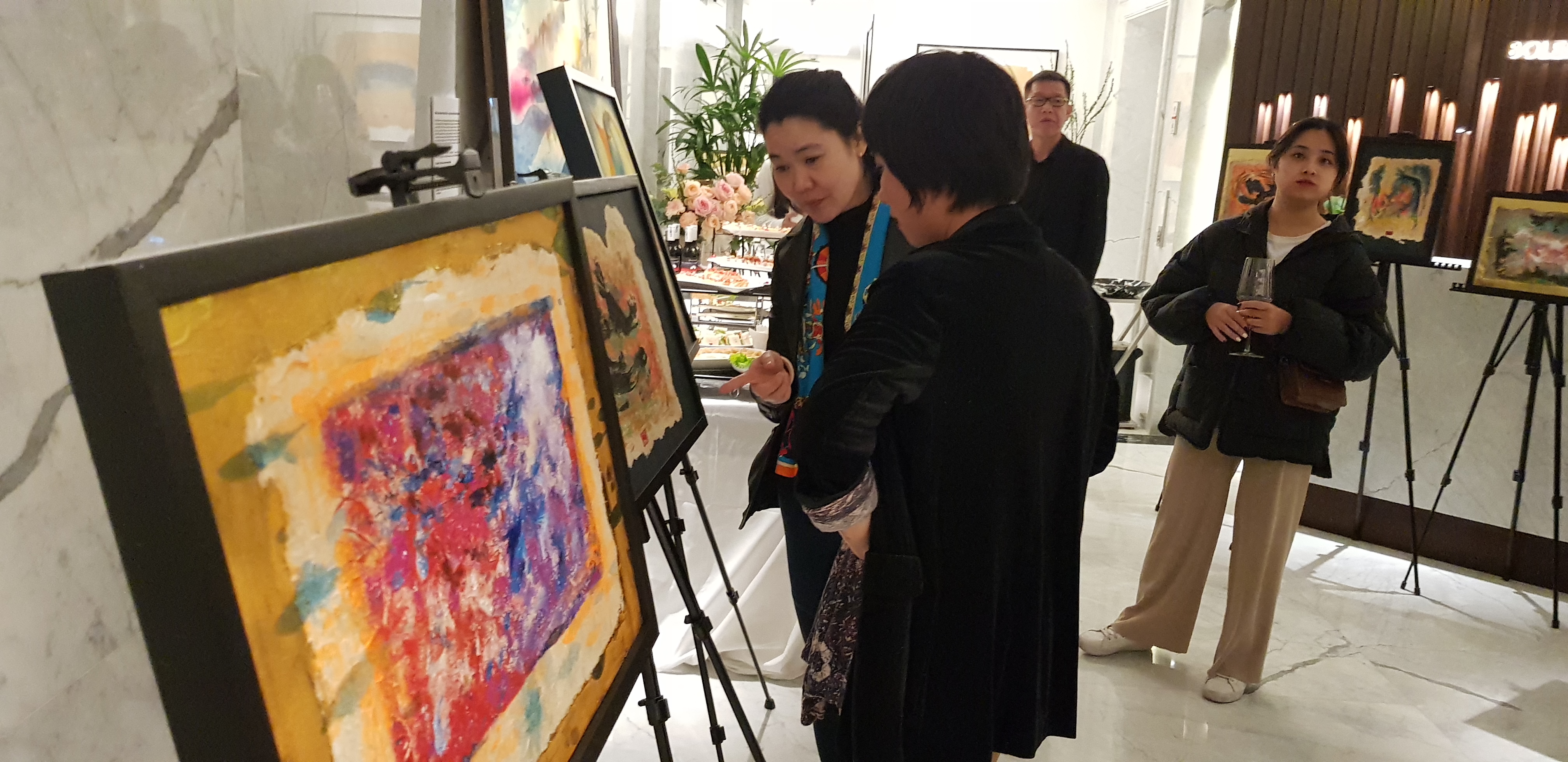 Đại biểu, khách xem tranh tại triển lãm. |