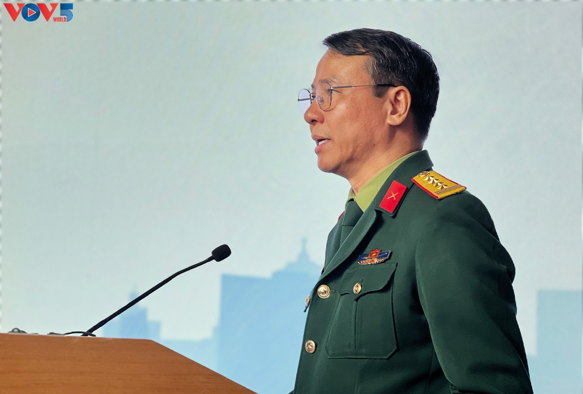 Ông Lê Vũ Huy, Giám đốc Bảo tàng Lịch sử Quân sự Việt Nam, phát biểu tại lễ khai mạc. Ảnh: VOV5