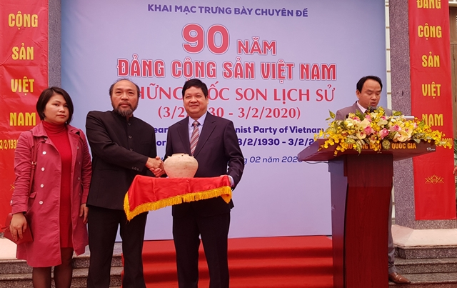 Dịp này, Bảo tàng Lịch sử quốc gia tiếp nhận một số hiện vật do các cá nhân trao tặng. Trưng bày 90 năm Đảng Cộng sản Việt Nam - Những mốc son lịch sử mở cửa từ ngày 3 tháng 2 đến giữa tháng 4 năm 2020.