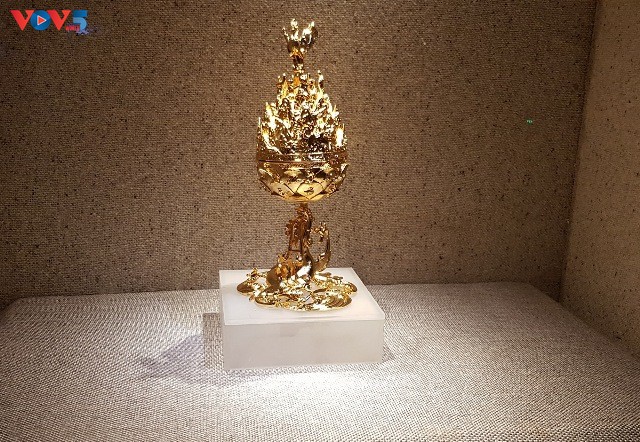 Lư hương đồng mạ vàng Baekje (phục chế). Ảnh: Ngọc Anh/ VOV5 |
