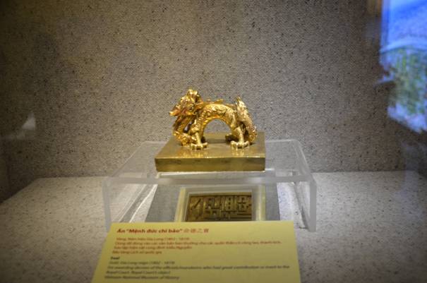 Đến tham quan trưng bày, du khách còn có cơ hội tìm hiểu, thưởng lãm hơn 100 hiện vật đặc sắc, đa dạng về kiểu dáng, kích thước, chất liệu, chứa đựng những giá trị thẩm mỹ, nghệ thuật cao, có niên đại từ thời văn hóa Đông Sơn đến ngày nay. Ngoài ra còn có các tư liệu mộc bản triều Nguyễn, đặc biệt, có hai hiện vật là trống đồng Cảnh Thịnh và ấn “Đại Nam Thụ thiên vĩnh mệnh truyền quốc tỷ”, là hai trong số 20 Bảo vật quốc gia đang được lưu giữ tại Bảo tàng Lịch sử quốc gia.