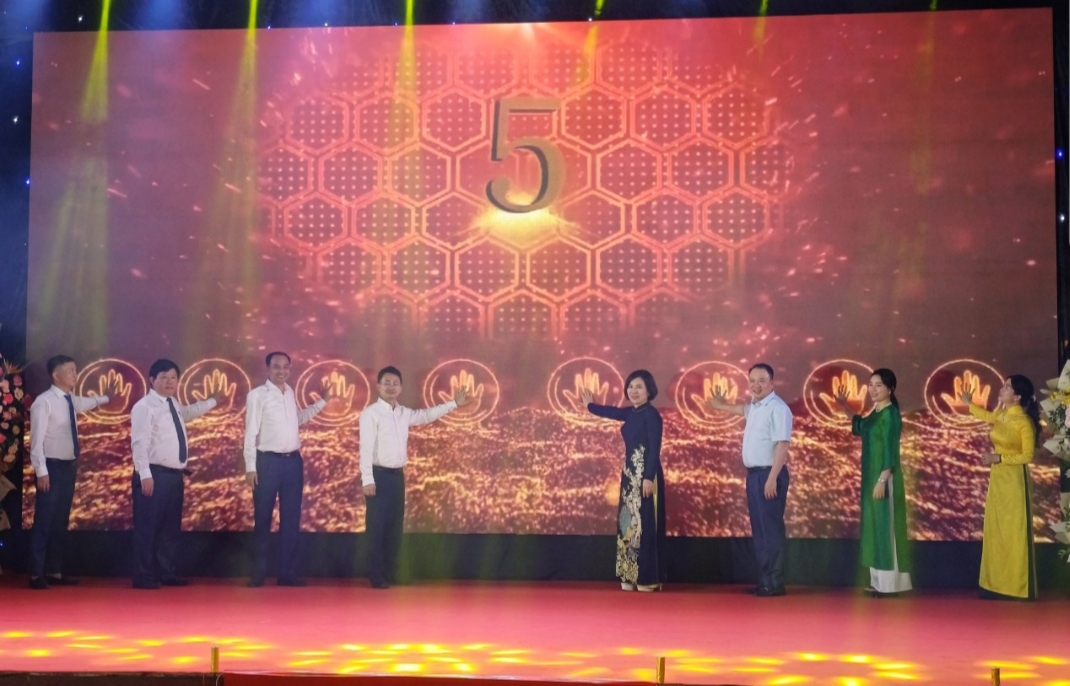 Các đại biểu thực hiện nghi thức khai trương. Ảnh Ngọc Anh |