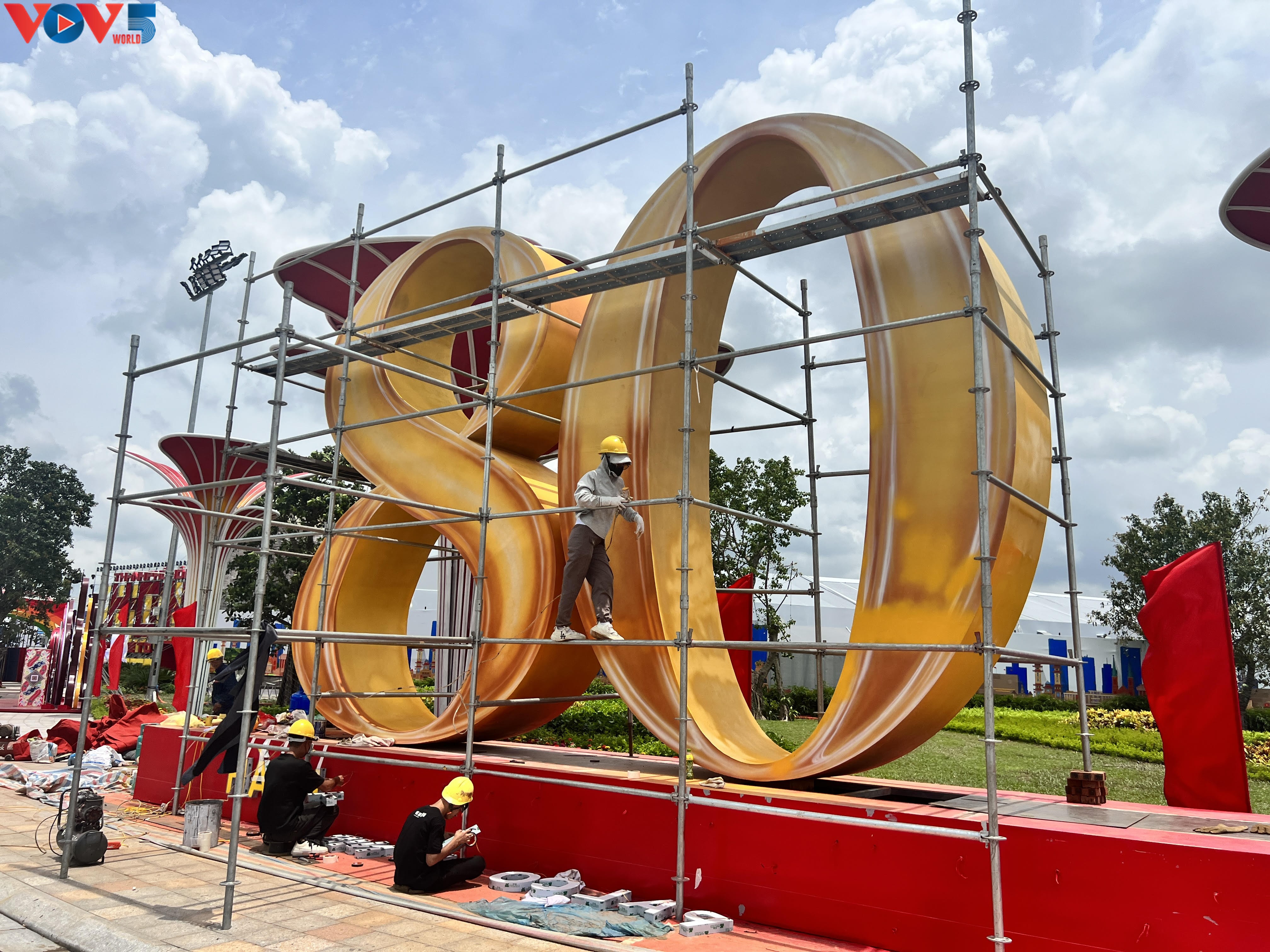 Thời điểm hiện tại, hoạt động chuẩn bị tại các gian trưng bày tại Trung tâm Hội chợ Triển lãm Quốc gia diễn ra vô cùng khẩn trương. Các đơn vị thi công đang "vượt nắng thắng mưa" để hoàn thiện từng hạng mục, chuẩn bị cho ngày khai mạc 28/8 tới.