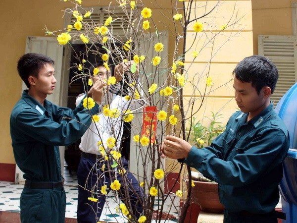 | Chiến sỹ đảo Trường Sa Lớn trang hoàng chuẩn bị đón Xuân. (Ảnh: TTXVN) |
