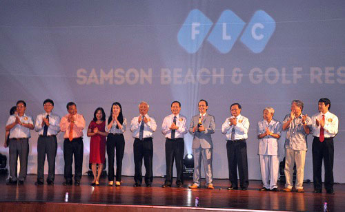 | Các đại biểu chúc mừng khai trương Khu du lịch nghỉ dưỡng sinh thái FLC Sầm Sơn. Ảnh: hanoimoi |