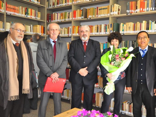 Phát biểu tại buổi lễ khánh thành, Đại sứ Việt Nam tại Italia Nguyễn Hoàng Long cho biết ông Pino Tagliazucchi là người bạn tốt của nhân dân Việt Nam và là một trong những nhà nghiên cứu về Việt Nam hàng đầu của Italy. Ông Pino Tagliazucchi có rất nhiều sách nghiên cứu về lịch sử Việt Nam và đã tham gia cùng các học giả Việt Nam dịch nhiều sách, ca dao, viết báo về Việt Nam. Ông còn sưu tầm nhiều sách báo, tài liệu về Việt Nam, về Chủ tịch Hồ Chí Minh, Đại tướng Võ Nguyên Giáp. Đại sứ Nguyễn Hoàng Long hy vọng trong thời gian tới thư viện sẽ là cầu nối để phát triển, thúc đẩy quan hệ hợp tác giữa hai nước nói chung cũng như Việt Nam và thành phố Allerona nói riêng./.