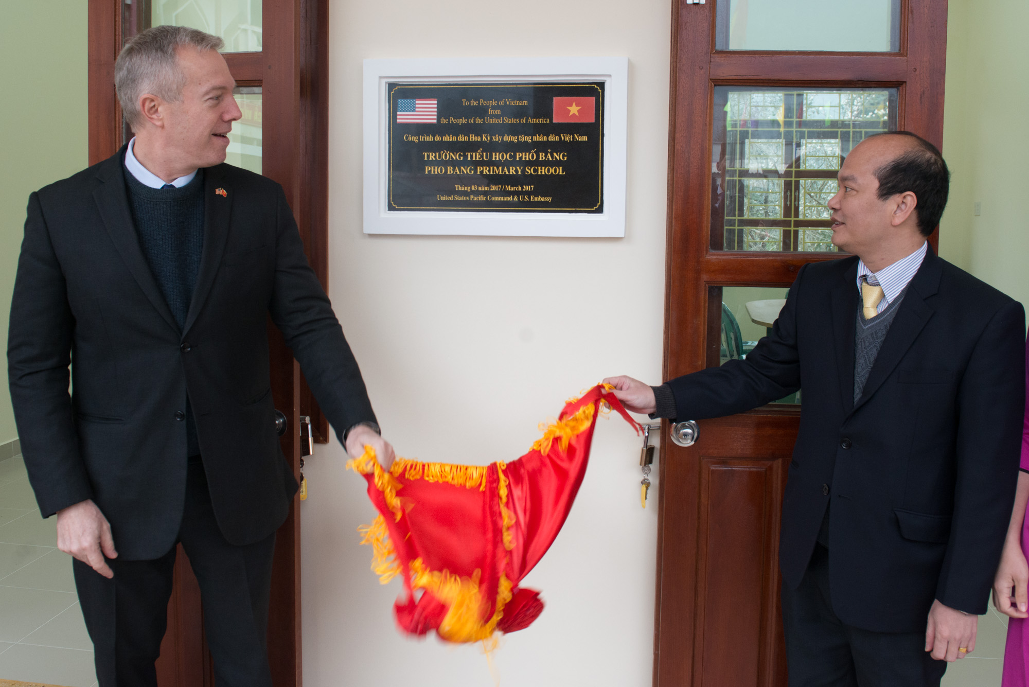 (VOV5) - Ngày 3/3, Đại sứ Hoa Kỳ tại Việt Nam Ted Osius và đại diện tỉnh Hà Giang đã khánh thành Trường tiểu học Phố Bảng được xây dựng từ nguồn vốn của Chương trình Hỗ trợ thảm họa nhân đạo và Hành động dân sự ở nước ngoài của Bộ Tư lệnh Thái Bình Dương Hoa Kỳ.