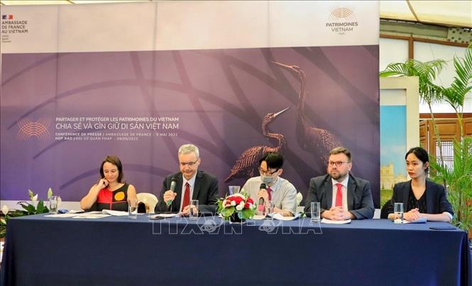 Chiều 9/5, Đại sứ quán Pháp tại Việt Nam họp báo công bố khởi động dự án hợp tác “Chia sẻ và gìn giữ di sản Việt Nam” trị giá 18 tỷ đồng, trong đó có 14 tỷ đồng do Chính phủ Pháp tài trợ, triển khai từ năm 2022 - 2024. Mục tiêu của dự án là cụ thể hóa các hoạt động hợp tác giữa các cơ quan, tổ chức văn hóa Pháp-Việt Nam, nhằm phát huy và gìn giữ các di sản thiên nhiên và văn hóa của Việt Nam.