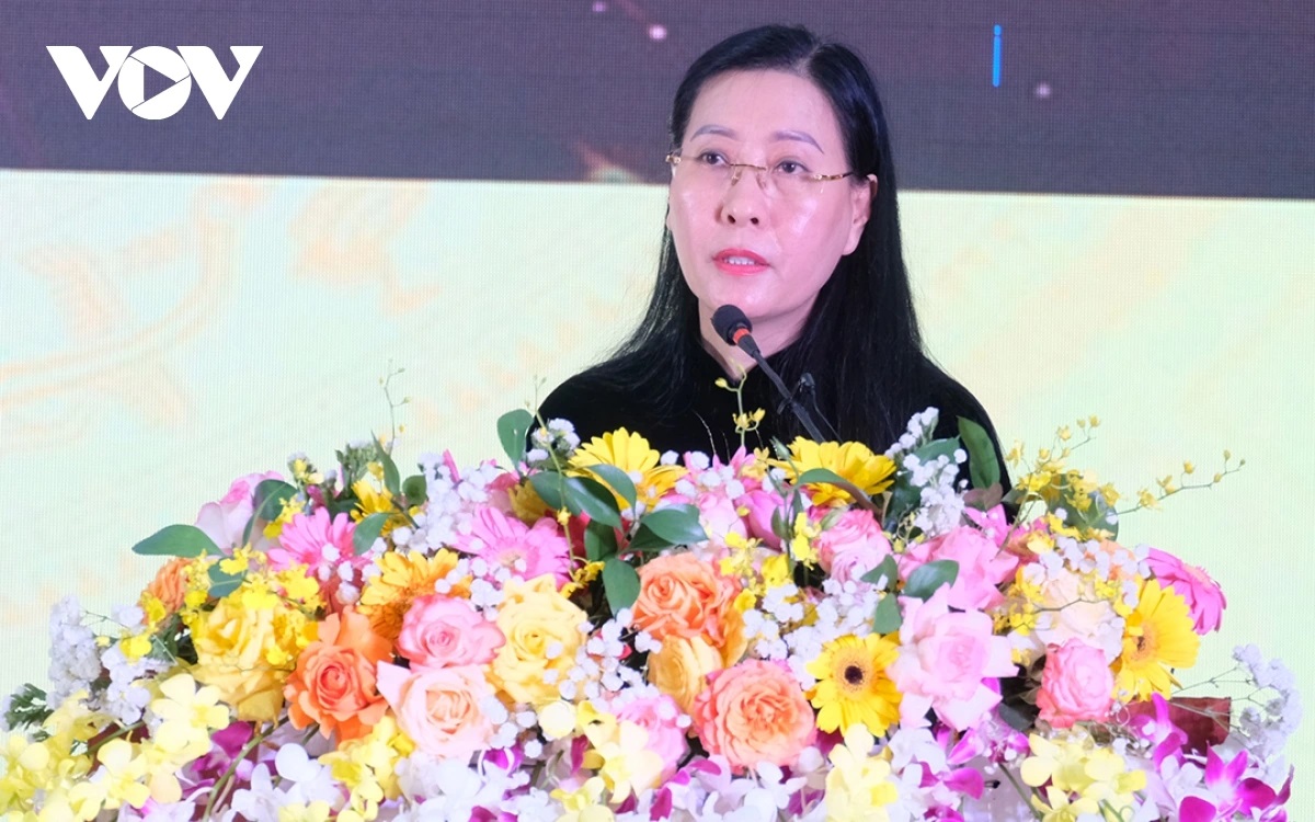Bà Bùi Thị Quỳnh Vân, Bí thư Tỉnh ủy Quảng Ngãi phát biểu tại Hội thảo - Ảnh: VOV |