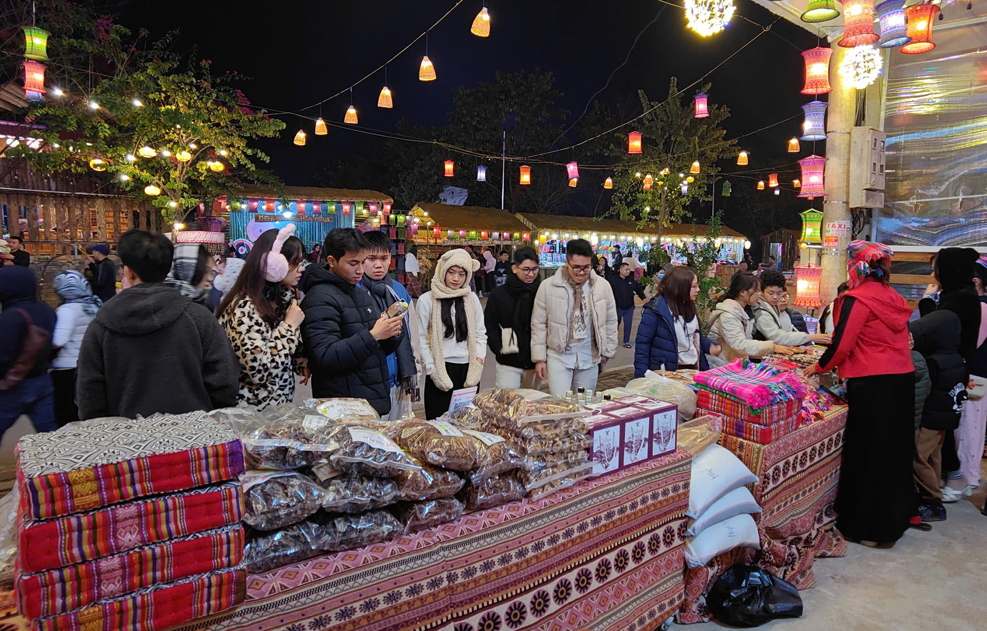 Du khách thích thú với các mặt hàng nông sản, đồ thủ công tại các gian hàng trưng bày. Ảnh: Trấn Long/VOV-Tây Bắc