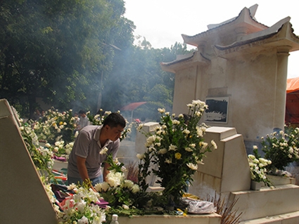| Khu mộ 10 nữ TNXP luôn đầy hoa tưởng niệm. Ảnh: H.M |