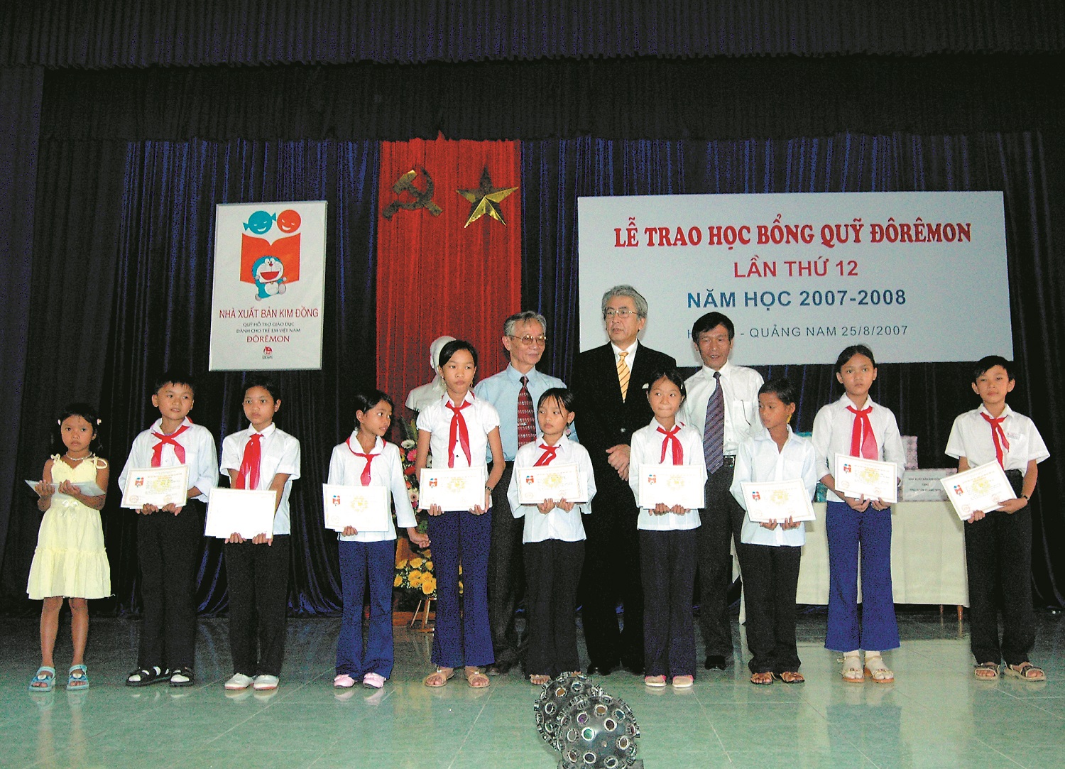 Ông Nguyễn Thắng Vu (ngoài cùng bên trái, hàng sau) tại Lễ trao học bổng Quỹ Doraemon năm 2007. |