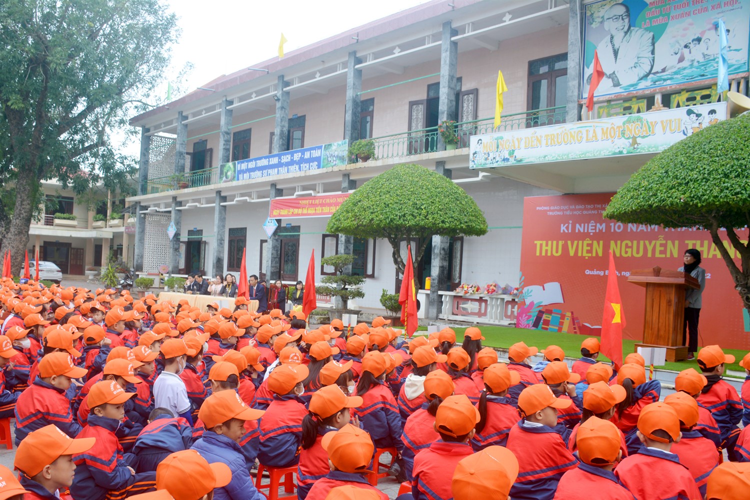 Học sinh trường Tiểu học Quảng Thuận tham dự Lễ kỉ niệm 10 năm thành lập Thư viện Nguyễn Thắng Vu. |
