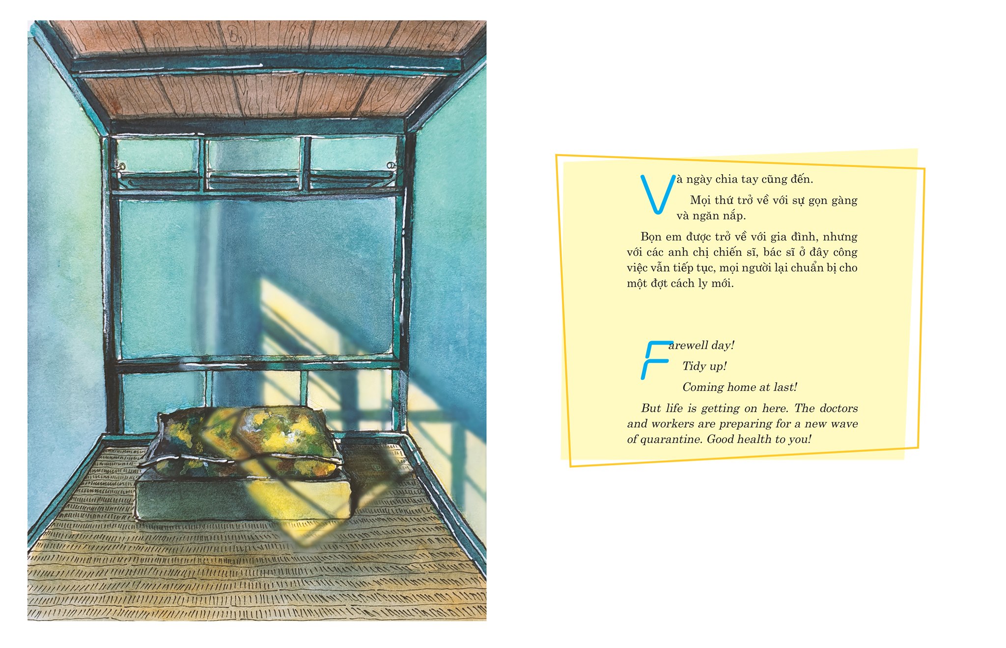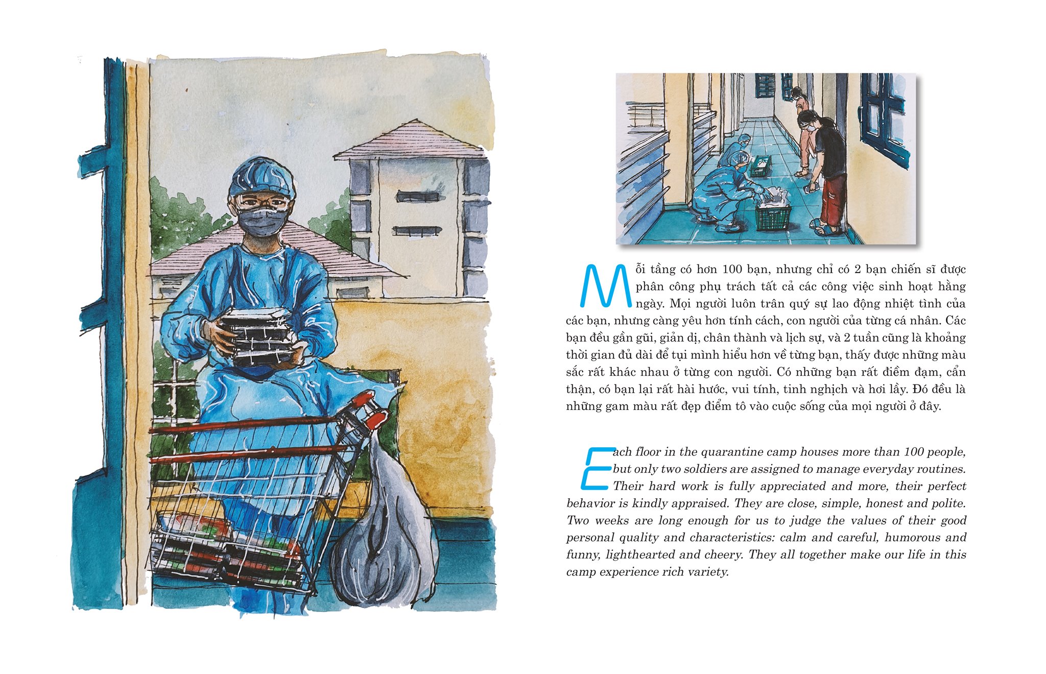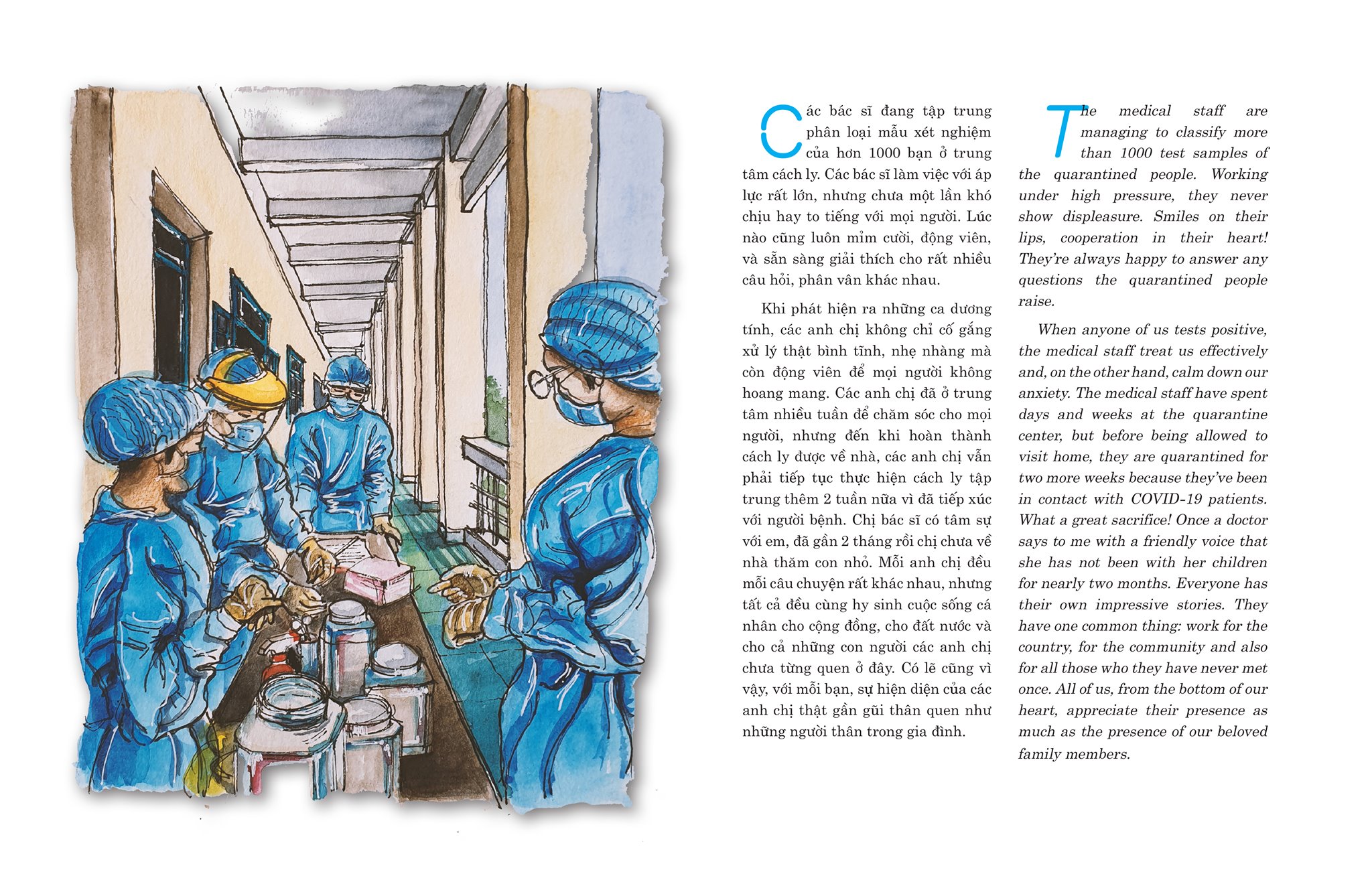 Cuốn sách in 4 màu, song ngữ (Việt – Anh) là tập hợp các ký họa của Nguyễn Tăng Quang, như một cuốn nhật ký của những người từng sống trong khu cách ly khi mới từ nước ngoài trở về Việt Nam.